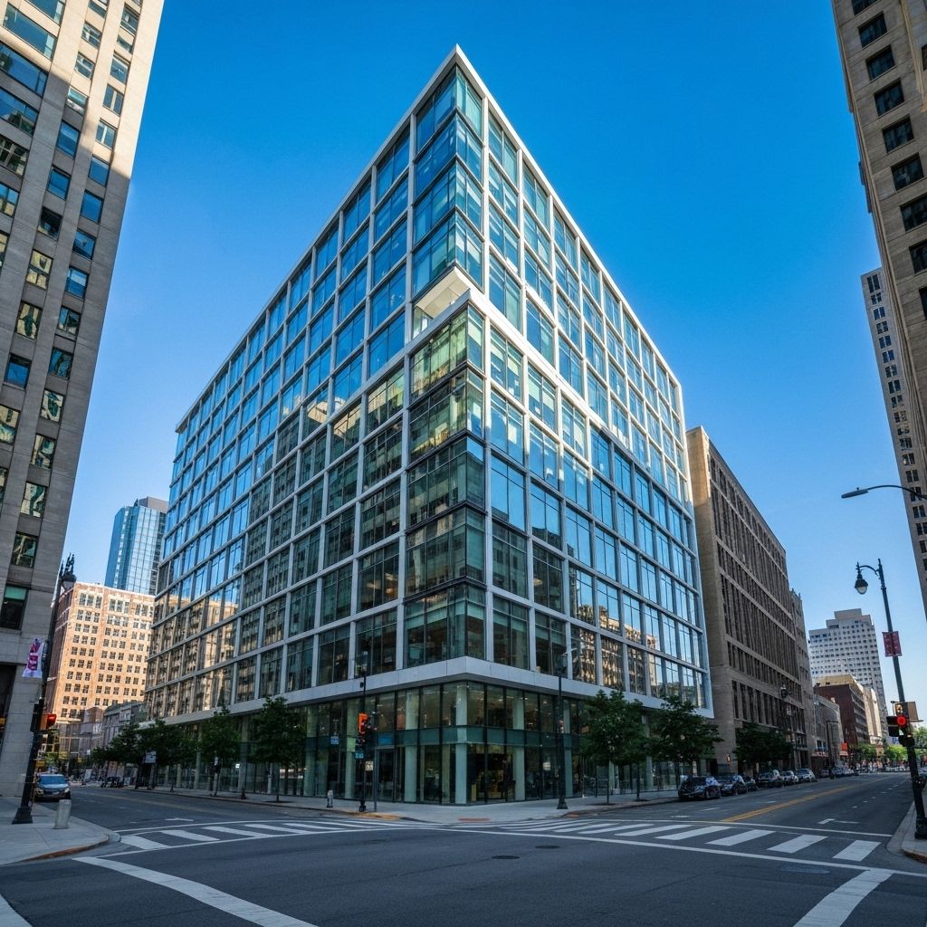 15-story office complex in downtown area with state-of-the-art facilities and LEED certification.