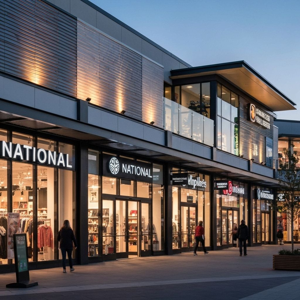 50,000 sq ft retail center with multiple storefronts and modern architectural design.